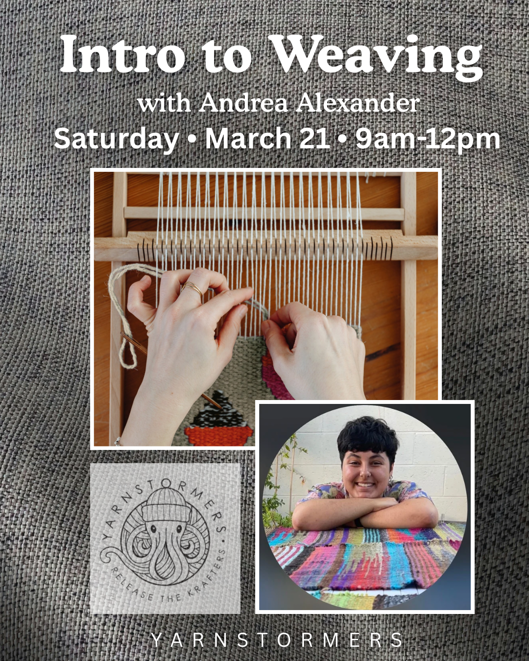– Loom rental (in-class use): + $50 - Please note at check out if you wish to rent a loom