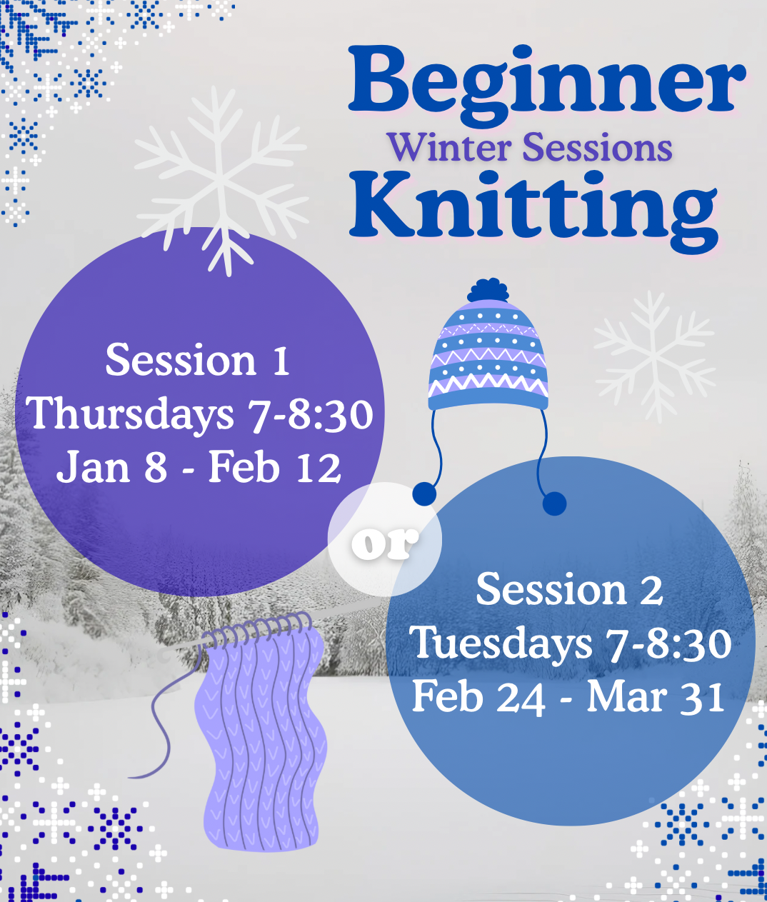 Beginner Knitting - Winter Sessions 1 and 2